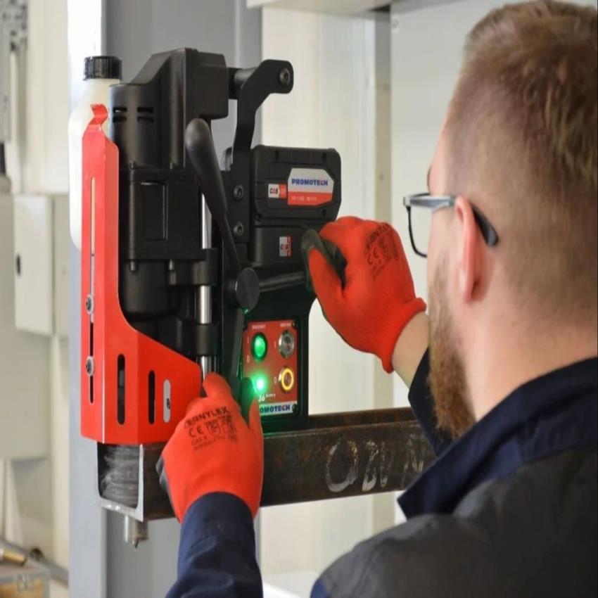 Manual automation grade. Features 9000 N magnetic holding force and 80x161x36.5mm magnet base. Drills up to 36mm and uses twist drills 12mm and above.