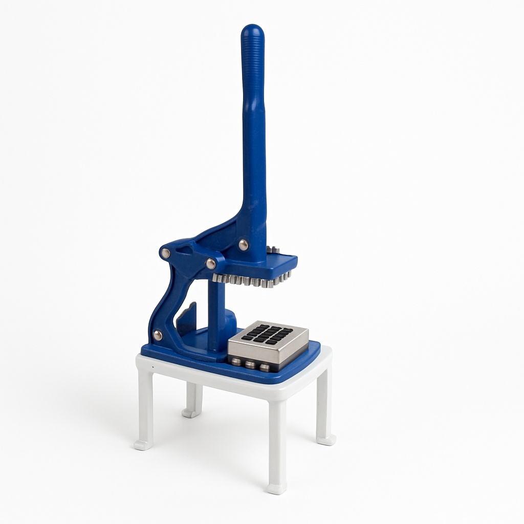 Mild steel manual French fry cutting machine with aluminum & S.S. blade. Offers cutting sizes of 7mm, 10mm, 15mm, 20mm. Weighs 20 Kg. Ideal for precise fry preparation.