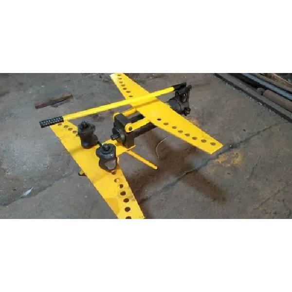 Manual hydraulic pipe bending machine. Accommodates up to 3" pipe diameter. Features adjustable bending radius from 0-50mm and 200-250mm. Operates on hydraulic power.