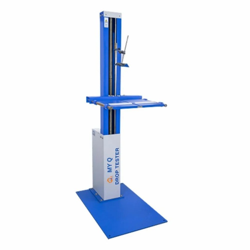 Manual laboratory drop machine constructed from mild steel. Features a 50kg load capacity and analog display. Designed for laboratory use. Made in India.