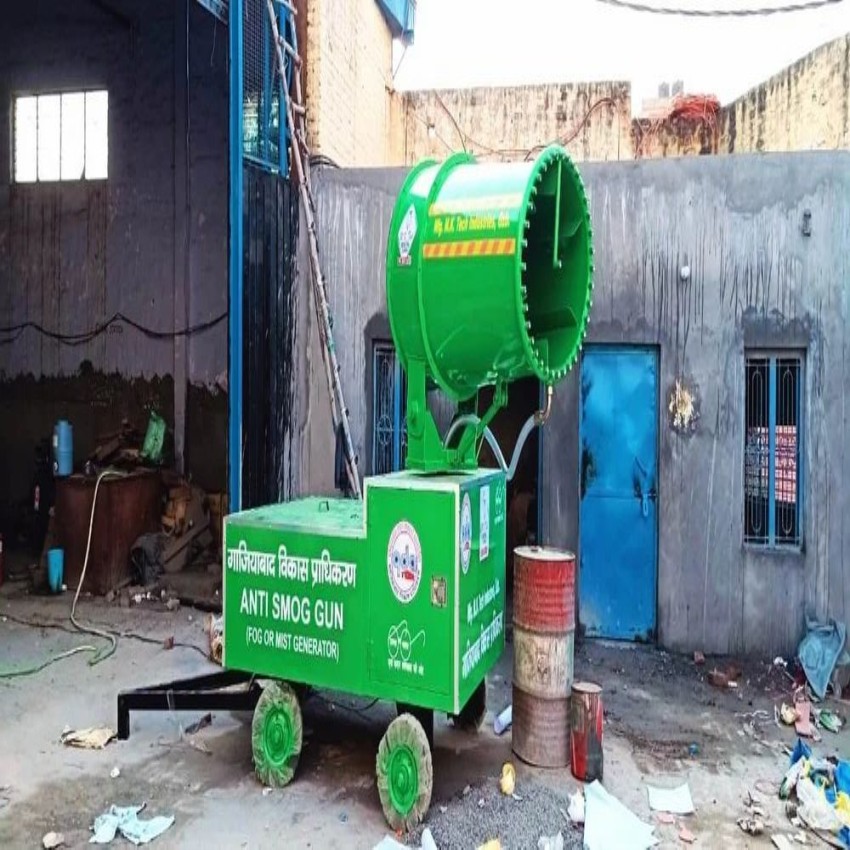Trolley-mounted manual mist cannon for dust suppression. Utilizes a fine mist spray to effectively control airborne particles in industrial environments. Offers portable dust management.