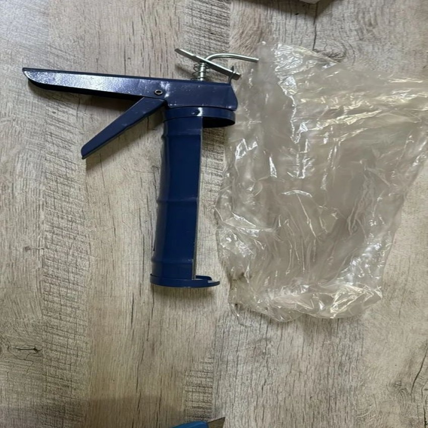 Manual 12-inch silicone sealant gun with low-temperature dispenser. Made of mild steel, 400 ml capacity, blue color, suitable for caulking.