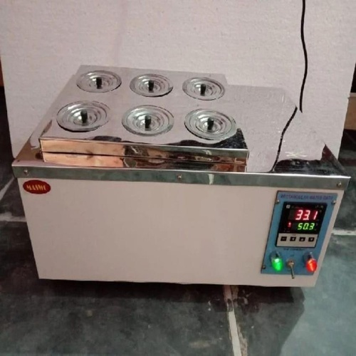 Manual stainless steel laboratory water bath with 20 Ltr capacity, AC 220V, 50 Hz, and SS-304 grade material. Features an SS body for durability. Ideal for laboratory applications.