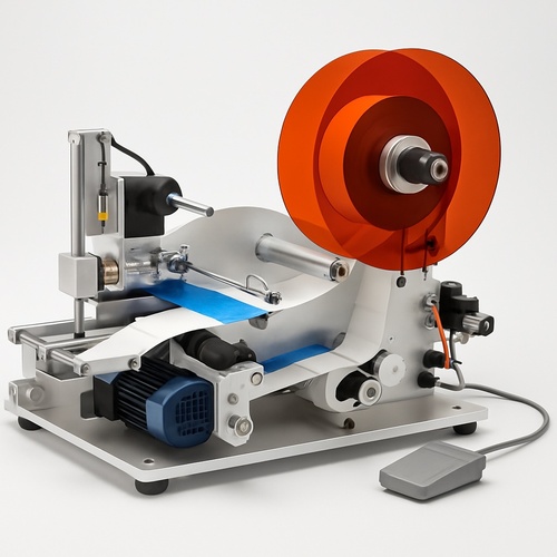 Basic manual labeling equipment for sticker application. Designed for straightforward labeling tasks on various products. Simple and effective operation.
