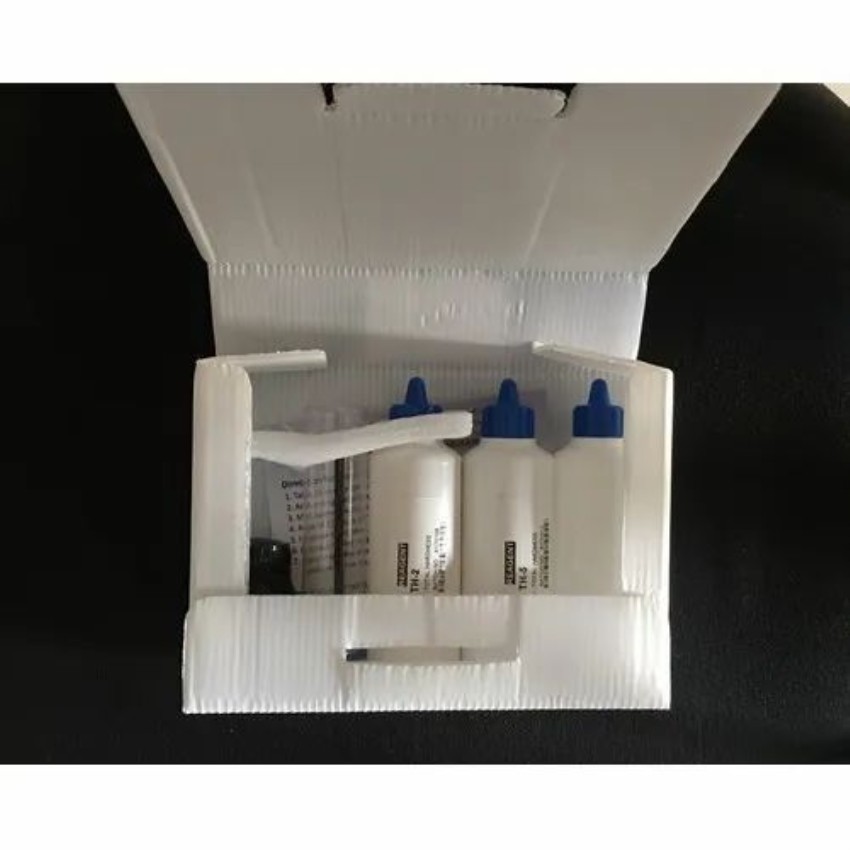 Manual titration water hardness testing kit for industrial/lab use. Plastic box packaging, 25-500 ppm range. Manual grade, new. Model AE211/AE511.