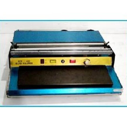 Hand-operated tray wrapper with complete SS 304 body. Uses 200W power, 220V supply. Achieves 25-30 packs/min production.