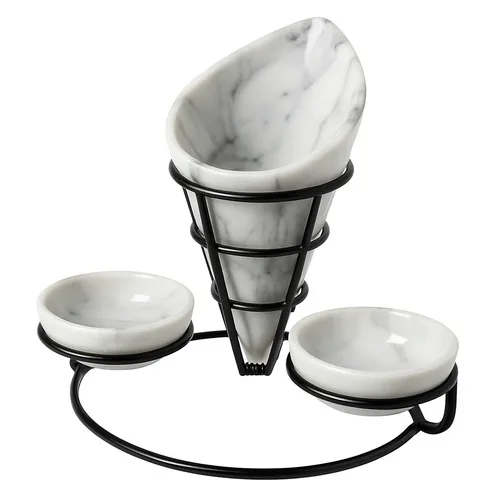 Modern black and white marble and metal French fries holder. Features a polished finish, 20 cm size, and comes packaged in a box for hotel use.