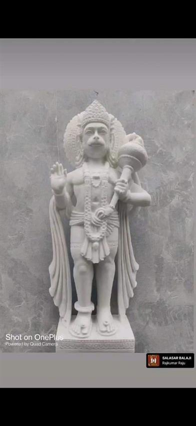 White marble statue of Hanuman. A powerful and revered deity represented in durable marble. Suitable for home or temple adornment.
