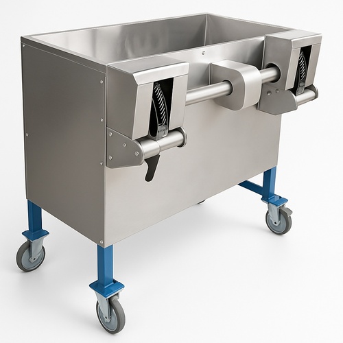 Semi-Automatic MARIYA coconut shell stripper machine, Model Mariya 209. Built with mild steel for industrial use. Operates at 50 Hz on a three-phase power supply, processing 300 coconuts.