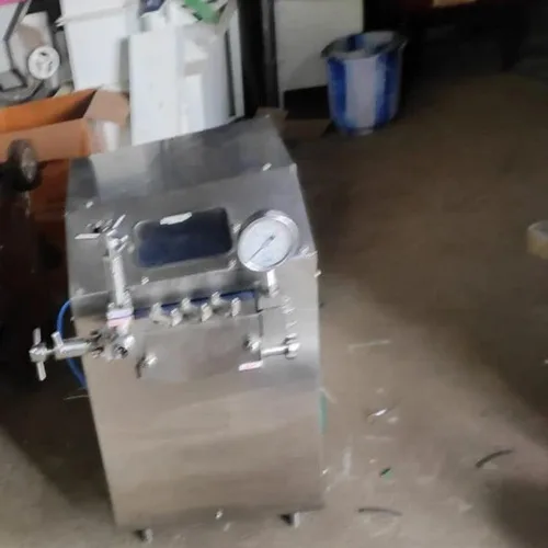Automatic industrial homogenizer (Mariya) for juice processing. Stainless steel, food grade, 150-200 Bar pressure, 100-1000 L/hr capacity, 2 HP motor, 3 phase.