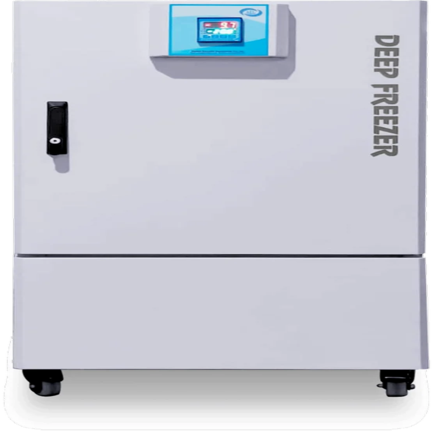 3 Phase Bio Deep Freezer, 50 Hz, operating at -20 degrees Celsius. Features 3" thick CFC-free PUF insulation and stainless steel trays. 230 V AC.