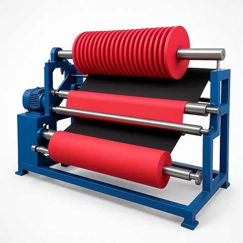 Semi-automatic slitting and winding machine for medical applications. Processes polypropylene (PP) spunlace non-woven fabric, 100-150 GSM, 1650mm width.