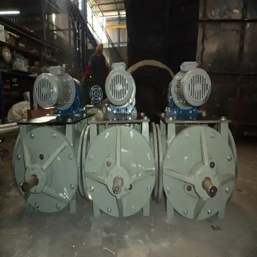 Industrial cast iron rotary valve designed for medium pressure applications. Reliable component for material flow control in manufacturing. Made in India.