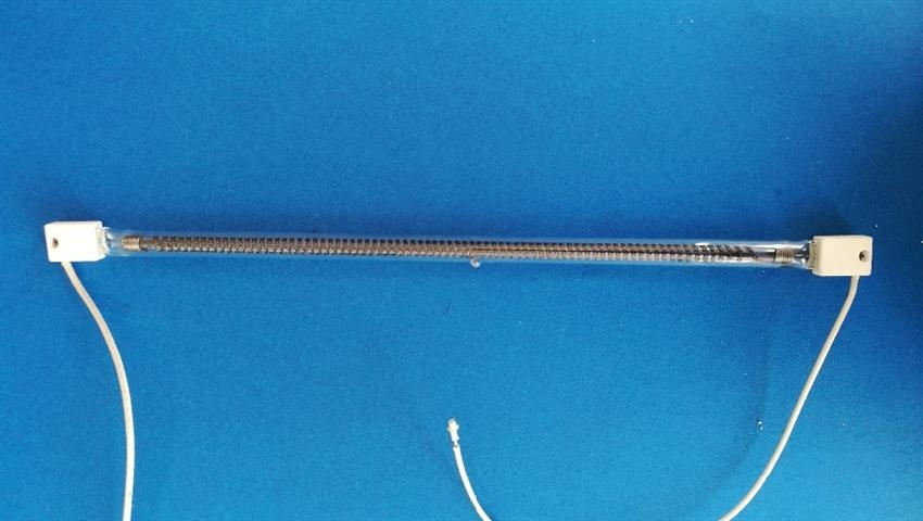 Quartz infrared heater with medium and short wave capabilities. Operates at 220V or 415V, with power from 500-3000W. Available in lengths of 100-3300mm, with a 10-20mm diameter.