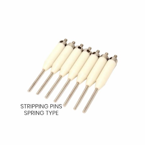 Medium-sized stainless steel stripping pins for the printing industry. These are gripper bar spare parts, manufactured in India.
