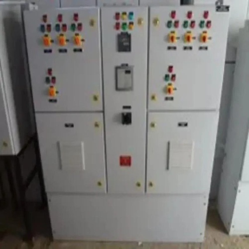 Sheet metal three-phase power factor correction panel for medium voltage applications. 50Hz frequency, 415V voltage. Industrial grade construction. Made in India.