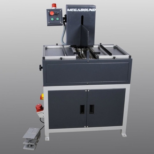 Semi-automatic cold glue casing machine. Features 415V 3-phase power, 1.25 HP motor, and 350 books/hr binding speed. Weighs 450kg, with dimensions 900x1700x1200mm. Includes one-year warranty.