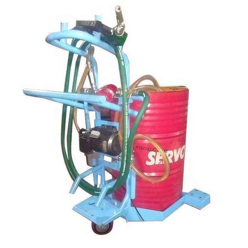 Semi-automatic mobile oil dispenser with 210 Ltr capacity. Features 3-6 hoses, 4m pipe length, 5 Bar operating pressure, and 25 LPM flow rate. Offers corrosion resistance.