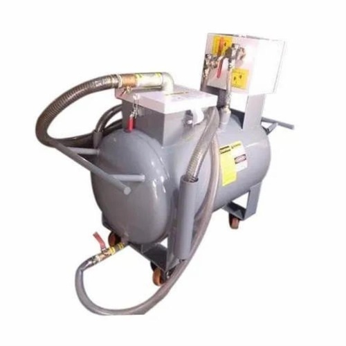 Semi-automatic oil cleaning machine with 100 LPM flow rate, 400 Ltr capacity, and MS & SS construction. Operates on 240V, 50Hz, 1 Phase power. Features 4 wheels and 350 kg weight.