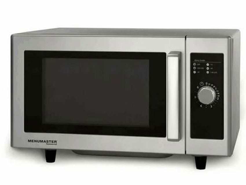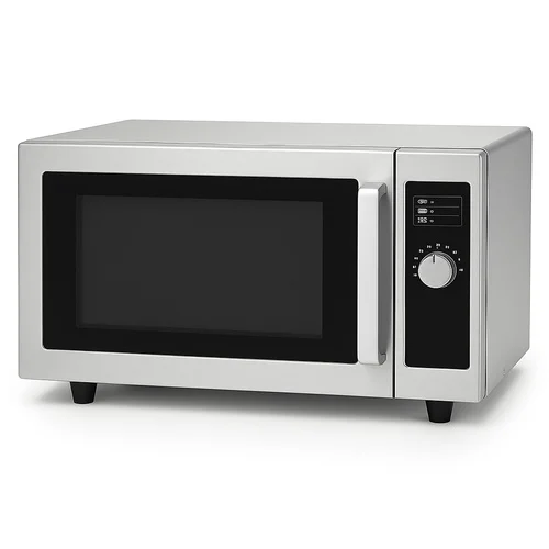 Commercial microwave oven, 23 Ltr capacity, 1000 Watts power, black finish. Features a single door and operates on 220V/50Hz. Ideal for commercial use with a 1-year warranty.