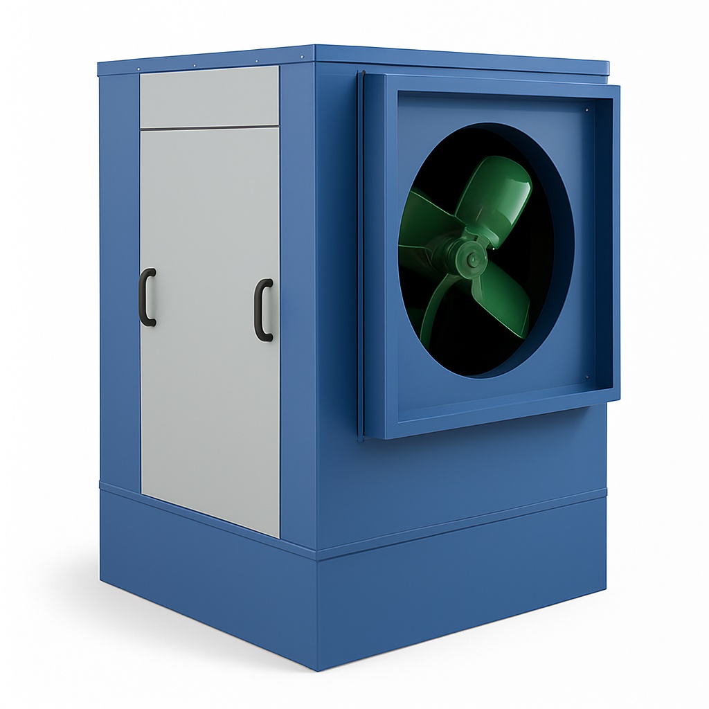 Single phase, 230V electric metal ducting air cooling machine. Covers 1000 sq ft with 5 fan blades. Available in 15" and 18" dimensions. Minimum order 10 pieces.