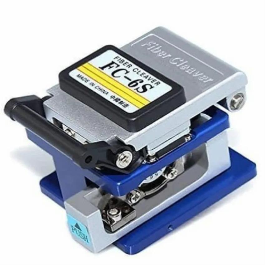 Metal fiber cleaver, model FC-6S, in silver and blue. Precisely cuts fiber at 90 degrees. New only.