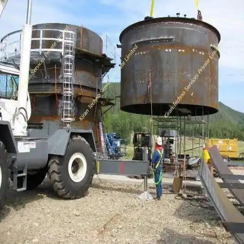 Customizable MS vertical storage equipment for chemicals/oils. Any capacity, shape, and wall thickness. Features connector and finishing. 6 months to 1 year delivery.