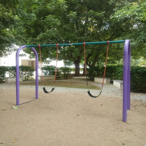 Durable metal playground swing seat with a blue rubber belt, suitable for outdoor use for children aged 5 to 15 years. Crafted in India.