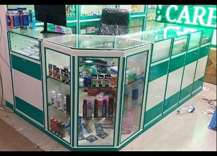 A square metal corner counter, customizable in color as per buyer's choice. This equipment is designed for corner placement and offers durable construction.