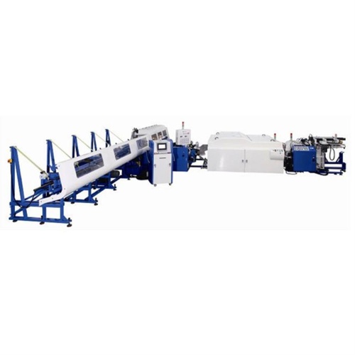 Aluminium tube cutting machine with 7.19s cycle time and 4.99s sawing time. Achieves +/- 0.01mm length tolerances with long saw blade life.