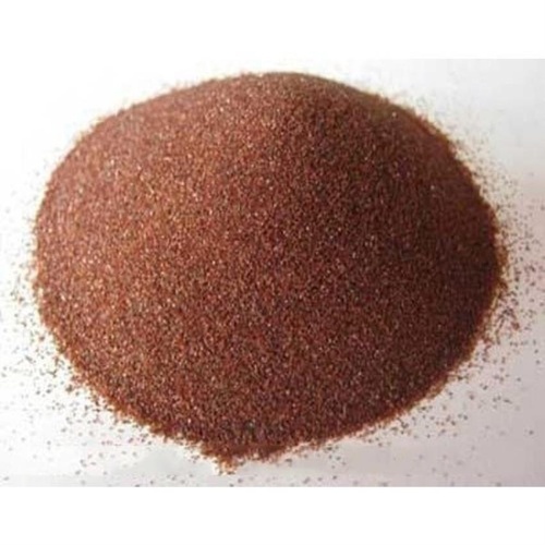 Brown garnet sand abrasive, grade 12/24 mesh. Solid and crystal state with a bulk density of 1.8-1.9g/cm3. Material is garnet.