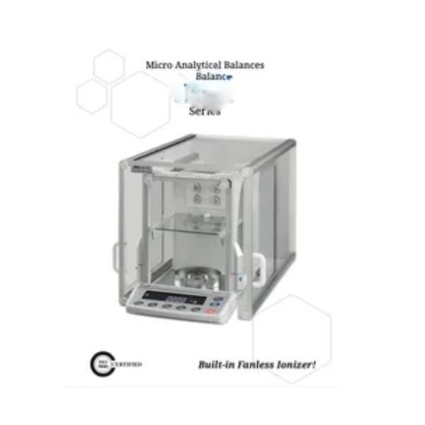 Accurate microbalance with 0.010 mg linearity and 0.0025 mg repeatability. Features fast stabilization, RS-232C/Quick USB interface, and 5/10 times/second display.