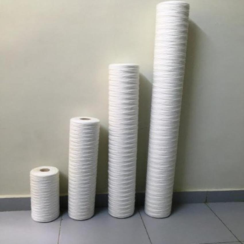 Microfiber string wound filter for water use. 5-10 inch length, over 4 inch diameter. Plastic material, 40°C operating temperature. Wound, Spoon product type.