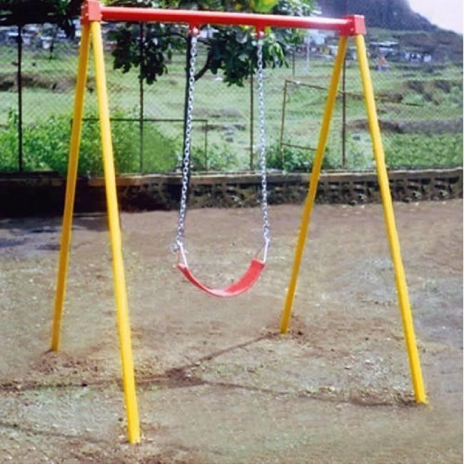 Mild steel playground swing with a 1-seater capacity, suitable for ages 3-12 years. Color customizable to customer requirements. Robust construction for safe play.