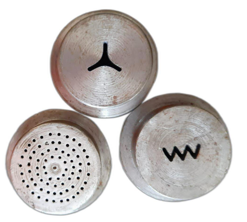 Industrial mild steel die for corn puff extruders. Features fine finish, 2 ton/day capacity, and round shape. Manual operation, made in India.