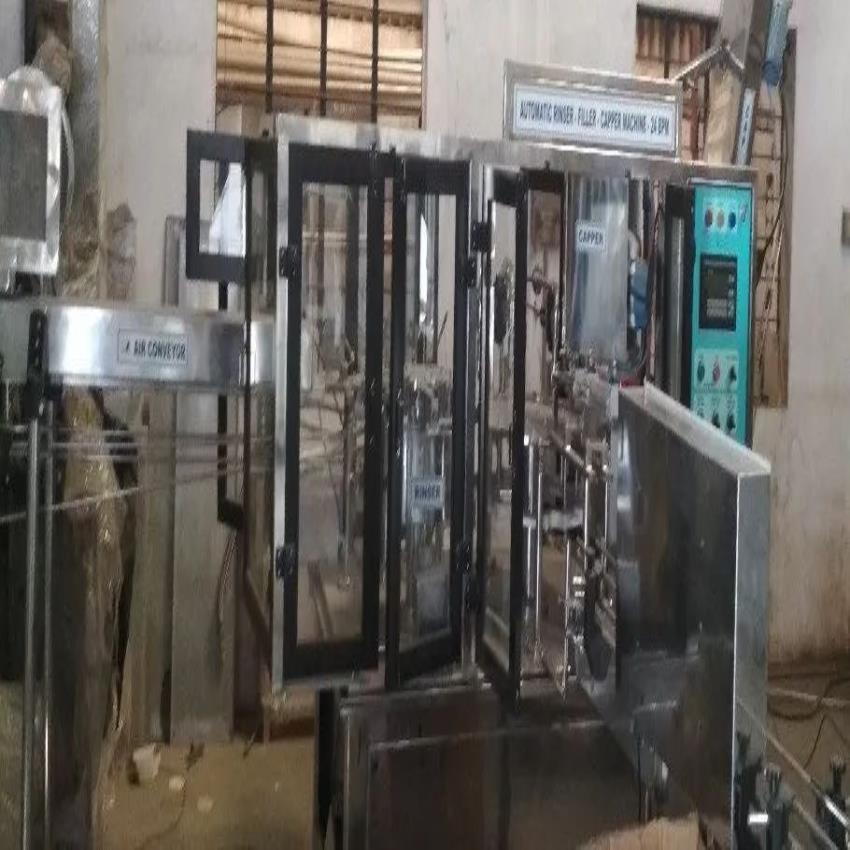 Automatic electric bottle filling machine, mild steel construction. 440V, 50Hz, 3 kVA power. Features 2HP power consumption and 2000 ml filling range.