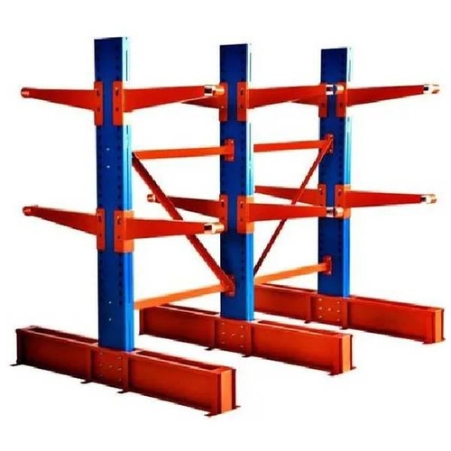 Color-coated mild steel cantilever racking system, 7 feet high. Features a cantilever rack type with a capacity of 50 Kg per foot, ideal for industrial storage solutions.