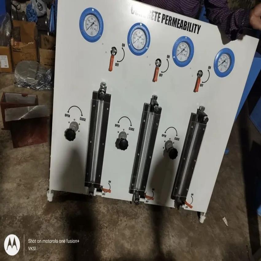 Mild Steel Concrete Permeability Apparatus, 3 cell type capacity. Operates on 220-240 VAC. Designed for concrete cost testing applications in India.
