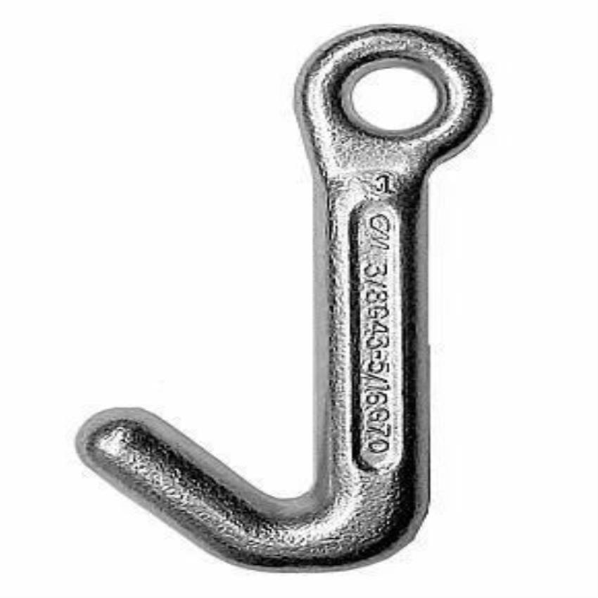 Silver J hooks made from durable mild steel for crane applications. Features a hanging installation type. Ideal for secure lifting operations. Made in India.