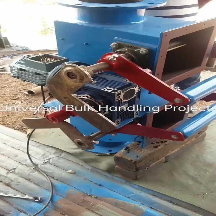 Mild steel double flap valve for material transfer. Available in sizes 200-1000mm, operating on 380-415 Volts. Features a color-coated finish. Medium pressure rating.