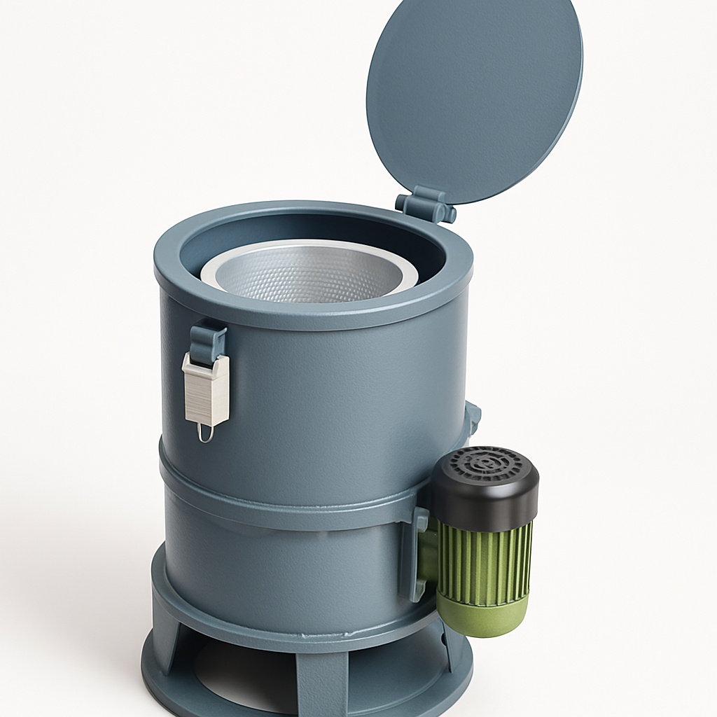 Mild steel centrifugal dryer designed for electroplating processes. Provides efficient separation and drying of plated components. Durable construction for industrial environments.