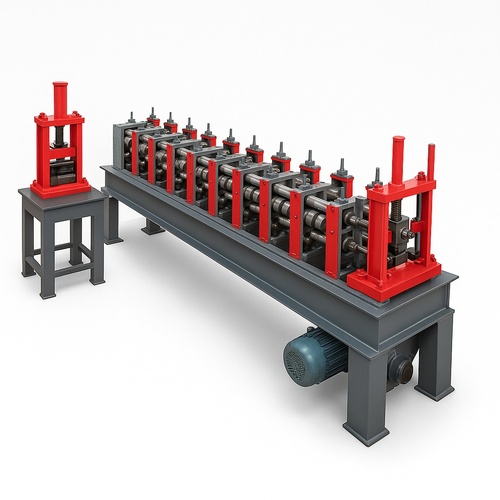 Fully automatic mild steel false ceiling channel making machine. Operates on 220V, 50 Hz with 0.5 mm job thickness capacity and 100 mm max sheet width.