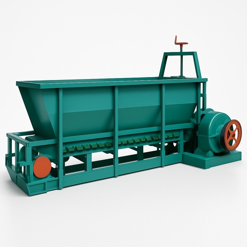 Mild Steel Box Feeder Equipment with 14 Ton Per Hour capacity. Powered by 10 HP./1440 RPM. Machine weight 1800 Kg. Size: 4836 x 1216 x 1290 mm.