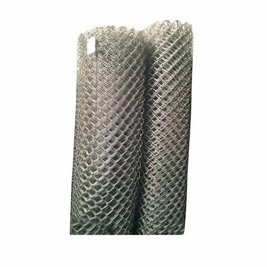 Corrosion-resistant mild steel galvanized chain link mesh fence for industrial fencing. Zinc coated, 3.2mm wire diameter, 50-50mm spacing, 5ft standard size.