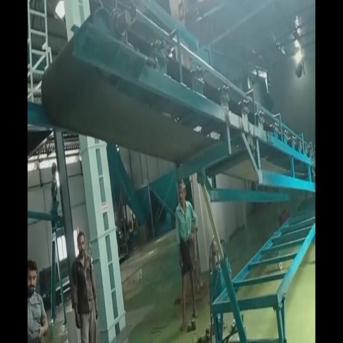Mild steel hydraulic belt conveyor for material transfer. Features automatic operation, 100-150 kg/feet capacity, inclined orientation, and adjustable speed from 1-2 m/s.