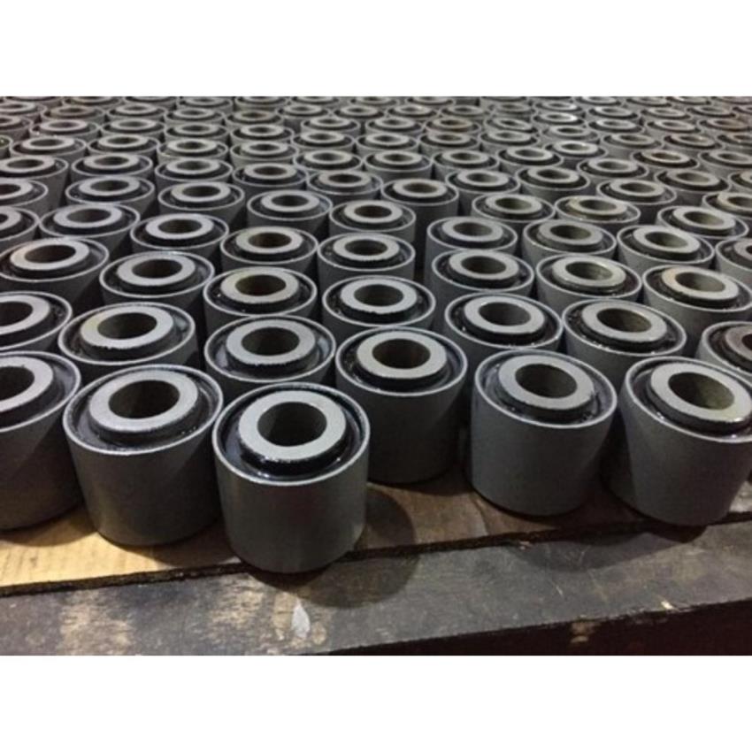 Cylindrical mild steel trailer bush for industrial applications. Diameter greater than 4 inches. Robust construction for heavy-duty use and durability. Packaged in boxes.