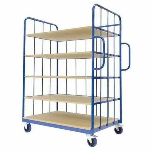 Mild Steel utility trolley for industrial use. Features 4 wheels, a 400-500 Kg load capacity, and a height of 5-6 feet.