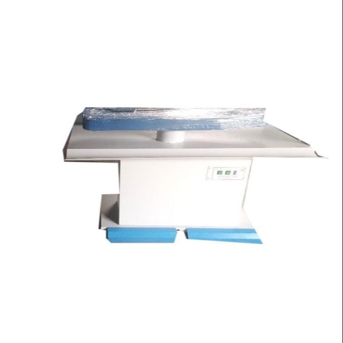 Industrial mild steel table for jacket finishing touch-ups. Features a 2 x 1 feet size, paint-coated finish, and operates on 240V (50 Hz). Robust frame for garment production.