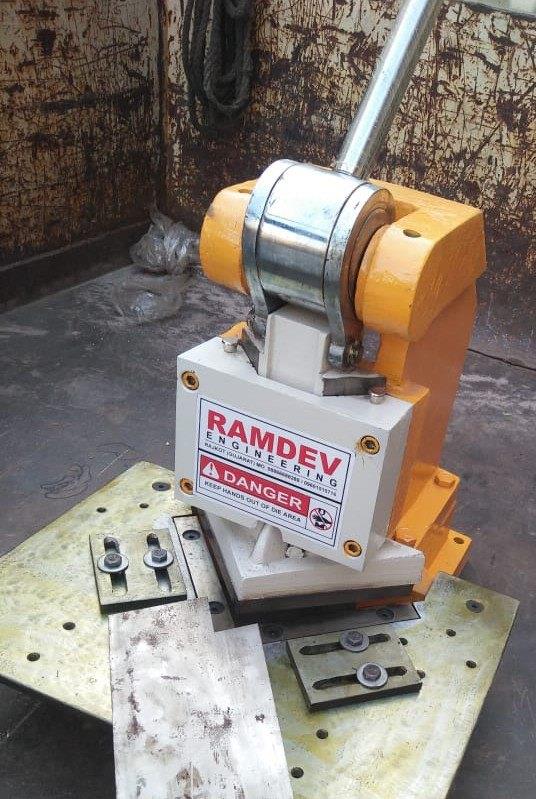 Manual mild steel notching machine for sheet metal corner cutting. Handles iron material with a 4 mm sheet thickness capacity. Operates manually.