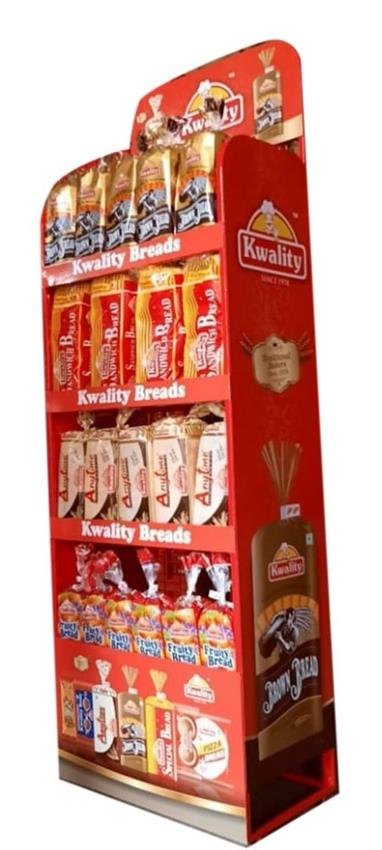 Paint-coated mild steel open storage rack for bread display. Supports 150 Kg capacity across four shelves. Minimum order quantity of 10 pieces required.